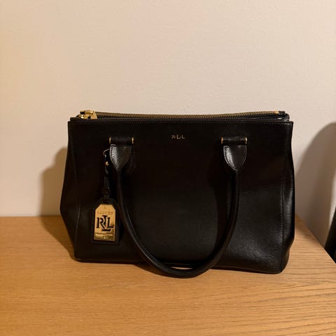 DKNY dameveske laget av lær. Vesken har 3 separate rom, to med glidelås, to bærehåndtak og en avtagbar skulderrem. Designet for damebruk.