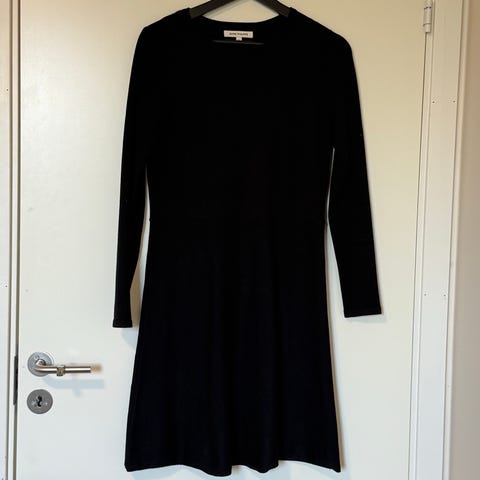 Filippa K Hverdagskjole i sort farge, størrelse M. Laget av 70% viskose, 25% polyamid, 4% elastan og 1% polyuretan. Designet av Filippa K og produsert i Portugal. Kjolen har 3/4 ermer og en enkel, klassisk stil egnet for hverdagsbruk.