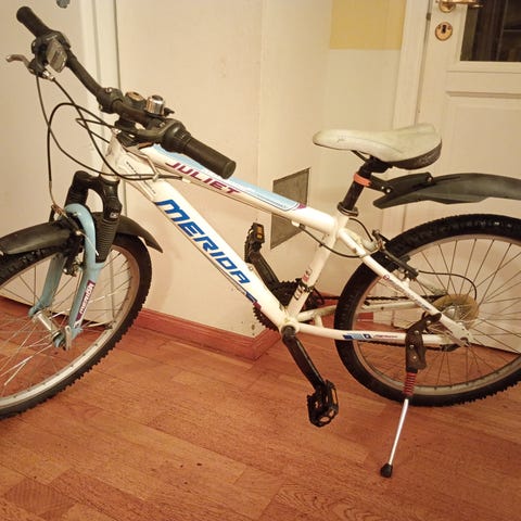 Sykkelen er kjøpt mrs 25, brukt en sesong, men er en del bruksmerker. Se bilder. Oppbevart i garasje, hver natt.