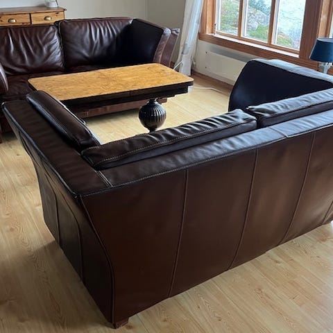 Boston Møbelgruppe, Pene hele møbler, Ser fargen varierer i lyset fordi det er litt pusete mykt stoff på armlener og sider, derfor ser det ut som om det er ulike farger eller slitt, men det er det ikke, det er kun lyset som skaper variasjon. Herlige og sitte i. Kan brukes over alt. ;-)