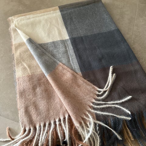 Stort skjerf i ullblanding. Helt ubrukt.