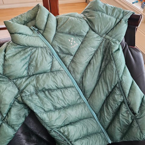 Haglöfs ytterjakke i blå farge, størrelse M for kvinner. Passer til utendørsbruk og gir varme og komfort.