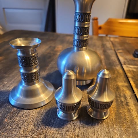 Gunnar Havstad Tinn, karaffel og snapsglass.