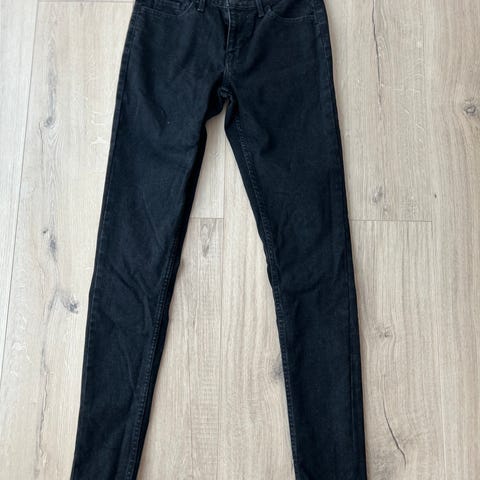 Levi's jeans i blå farge, størrelse S med midjevidde W28. Laget i denimmateriale, designet for kvinner. Jeansene har klassisk fem-lommers design og knappelukking.