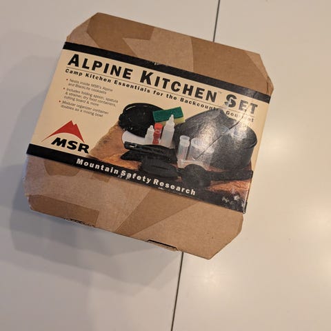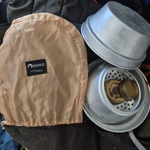Lite stormkjøkkensett for en med kopp.