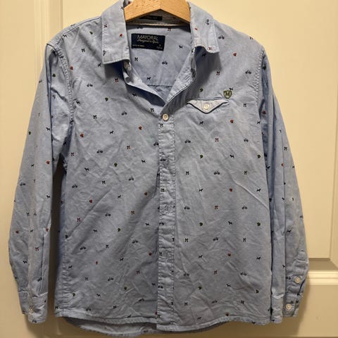 H&M skjorte for barn i størrelse 92, farge blå med julemotiv. En veldig søt skjorte som kun er brukt en gang.