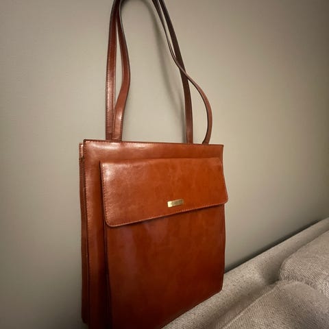 Vesken har to solide skulderstropper og kan brukes både som håndveske og skulderveske.