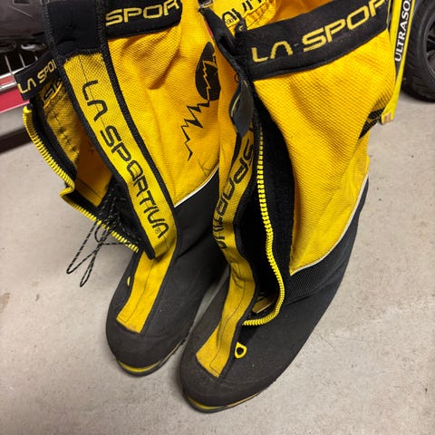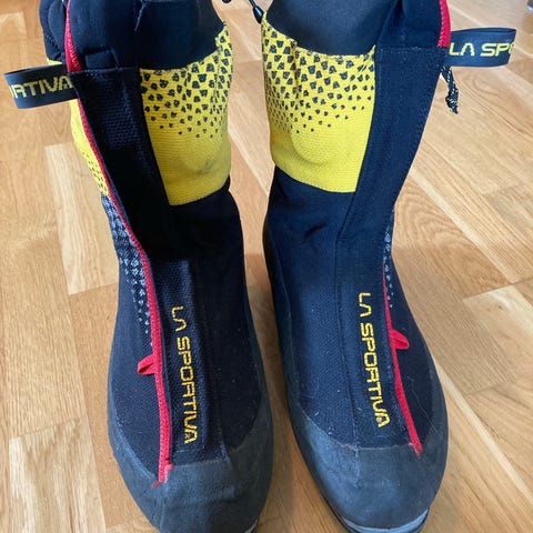 Høyfjellssko Scarpa Phantom 8000m (unisex) i størrelse 40, jeg har normalt størrelse 37 i sko. Kun brukt på en ekspedisjon.