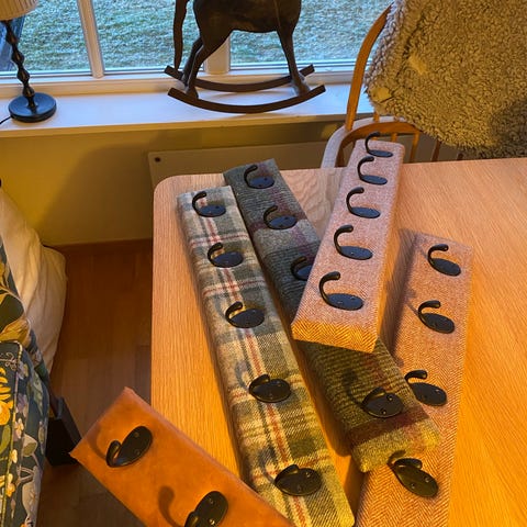 Jeg produserer også knaggrekker på bestilling med egne mål/ stoffer.