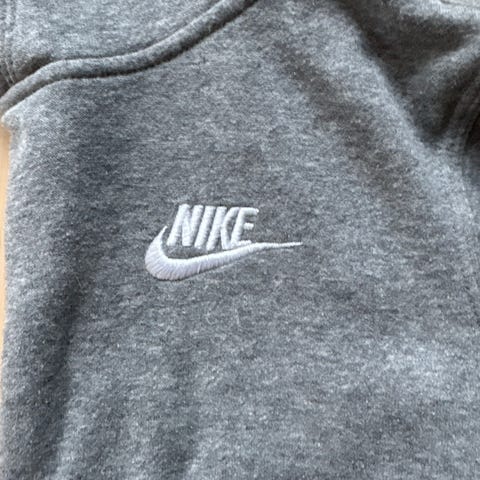 Nike Air barneklær i størrelse 74, unisex. Plagget har grå og svart fargekombinasjon, laget i materialer som gir komfort og funksjonalitet. Passer for barn i alderen rundt 12 måneder.
