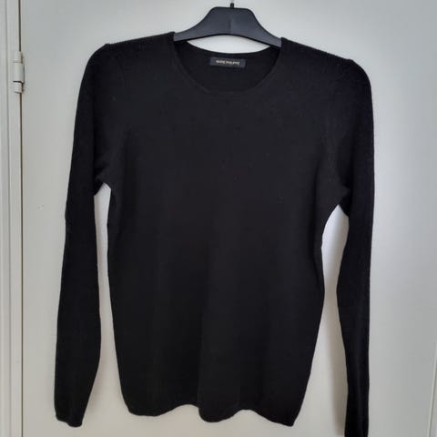 Marie Philippe Genser i oransje farge, størrelse M. Genseren har rund hals og er laget av materialer som krever skånsom vask, med vaskeanvisninger angitt på merkelappen.
