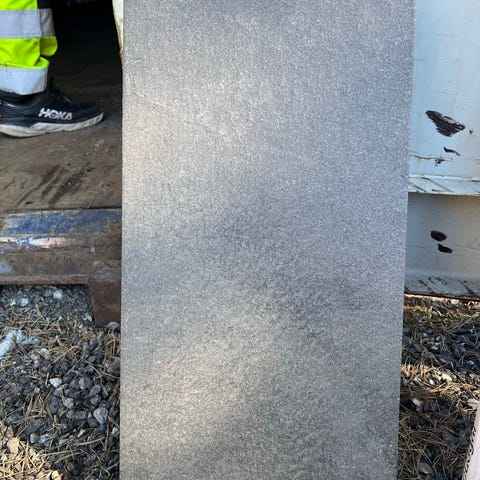 Granittheller med utfrest ord - WELCOME - bokstavene har integrert led lys og er gjennomgående i hellen. Hellen er 34 x 90 x 2 cm. Usikker på om led lyset virker - mulig ledningsbrudd. Virket da vi tok den opp. Bud mottas