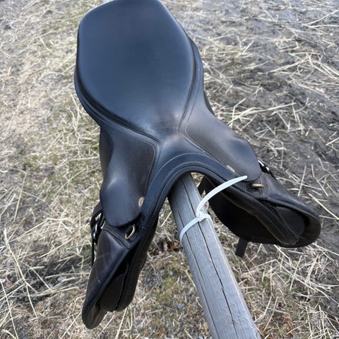 Globus Clic sprangsal/allroundsal. Kjøpt ny vinteren desember 2022. Bommen er justerbar og er endret fra opprinnelig størrelse 32 til 31 hos Skoies. Sparsommelig brukt, men noen vanlige bruksmerker. Fulgt opp halvårlig av saltilpasser siden den var ny uten noen anmerkninger. Globus-saltrekk og stigbøyler følger med.