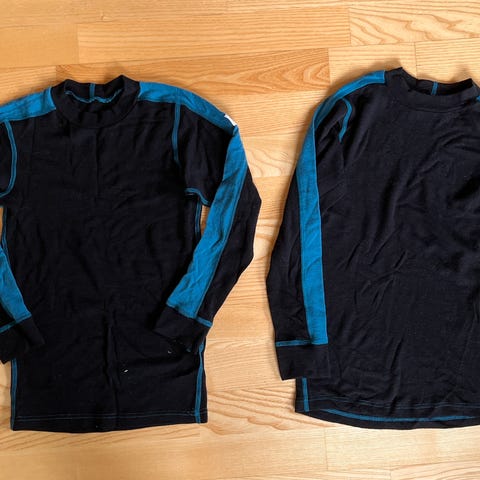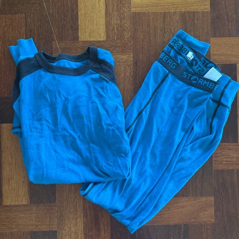I polyester, fine for barn som ikke tåler ull. Selges samlet. I god stand men synlig brukt.