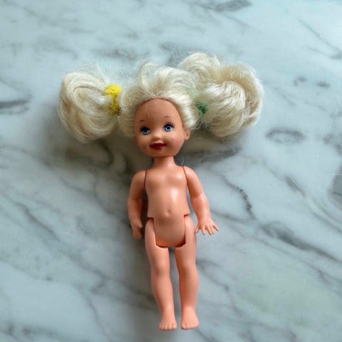 Barbie dukke iført en rosa kjole. Dukken har bevegelige armer .Egnet som leketøy for barn.