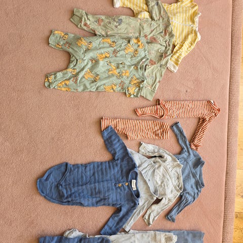 Litt ulike størrelser baby gutt. 33 plagg og 1 teppe.