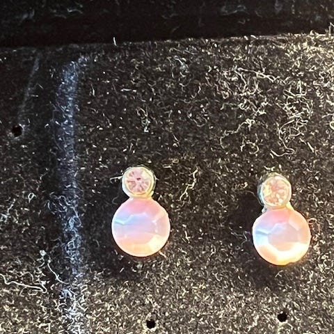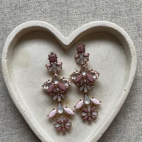 Vakkert og iøynefallende smykke med mørkrosa steiner. Perfekt til fest, bryllup eller for å pynte opp et enkelt antrekk.