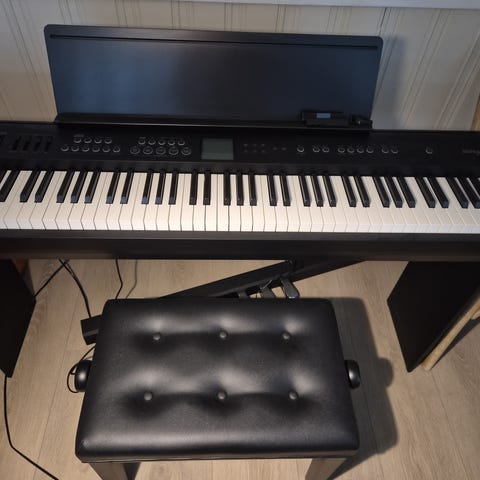Selger en ubrukt CASIO WK-7600 keyboard workstation med stativ og strømstøpsel.