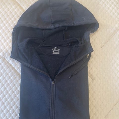 Nydelig og forseggjort strikket jakke fra Lanulva. Hette og glidelås. Kostet over 2000 kroner ny, og er nærmest ubrukt. Mørk blå farge. Kan brukes både som cardigan og jakke.