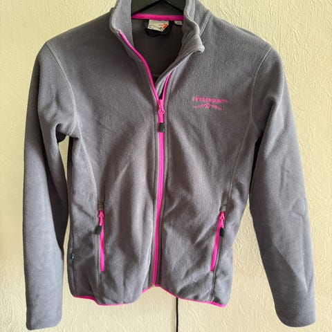 Fleece jakker i rosa farge, størrelse 36 for kvinner. Jakken er laget av fleece-materiale og har glidelås foran samt lommer med glidelås. Passer til daglig bruk og gir varme og komfort.