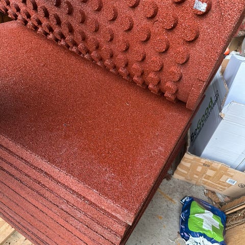 Gummi gulv 1m x 1m x 30mm helt svart. 450 kr pr kvm.