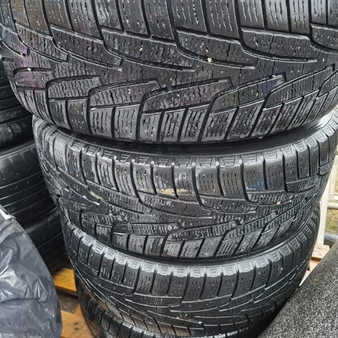 Dekkene må byttes; de fikk jeg slik da jeg kjøpte bilen, og jeg brukte dem aldri, men jeg tok dem fordi felgene var fine og originale BMW, og de er i god stand.