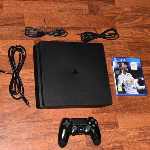 PS4 slim, 1 håndkontroller+ 1 spill.