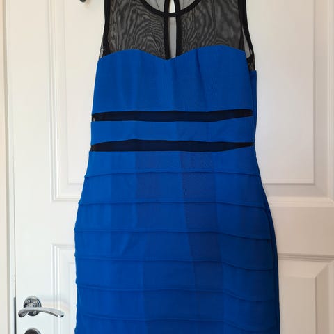 Grønn kjole med svart mesh ermer. Kjolen har en tettsittende passform med lange.