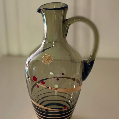 Sjelden karaffel fra Dabs of Portugal i god stand, grønt glass, Dark Emerald Green. Høyde uten lokk 30 cm. Vintage fra 1960-tallet.