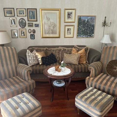 Tilstand: Stoler og puff er generelt i veldig god stand. Én av puffene har et lite flekkmerke (se bilde), men påvirker ikke funksjon eller komfort.