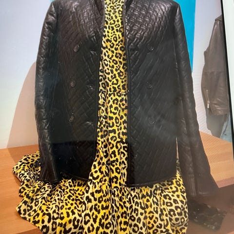 Materialet har et blomsterpreget mønster som gir fin tekstur og dybde til plagget.