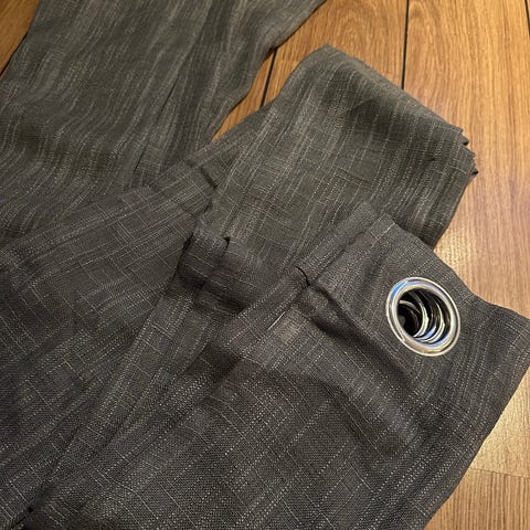 Selger 2 lengder med grå gardiner fra Nova tekstile.