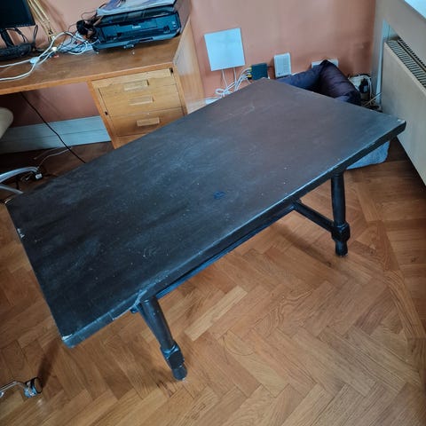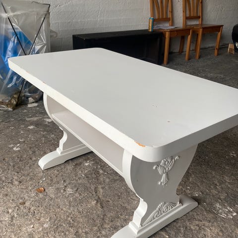Selger dette bordet etter min far. Pent men har noen merker på overflaten som vises på bildet. Diameter 76 cm. Må hentes før helgen ellers gis det bort til naboen.