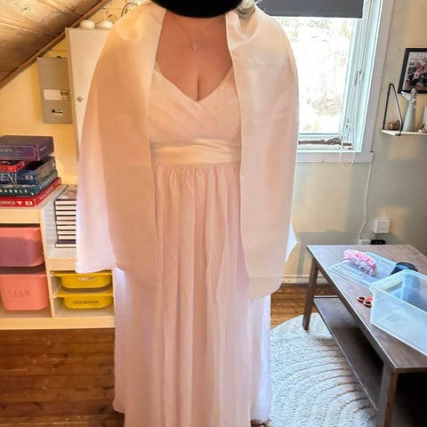 Hvit selskapskjole med åpen rygg. Ubrukt, har lappen på