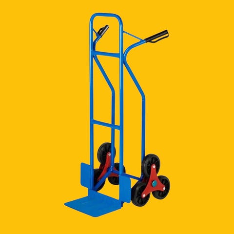 Solid sekketralle med slitesterke klatrehjul montert i en stjernehjulkonstruksjon samt håndtak med knokebeskyttelse som beskytter hånden mot å klemmes i dørkarmer og mot kanter. Trappetrallen er egnet for transport av gods i trapper med normal trinnhøyde samt over avsatser og kantsteiner.