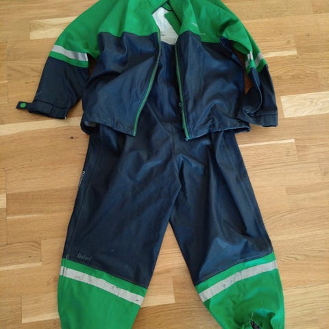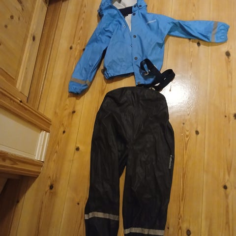 Didriksons regntøy str 110, mangler strikker i bena. Ekstra regnbukse str 110 medfølger om ønskelig. Ikke foret.