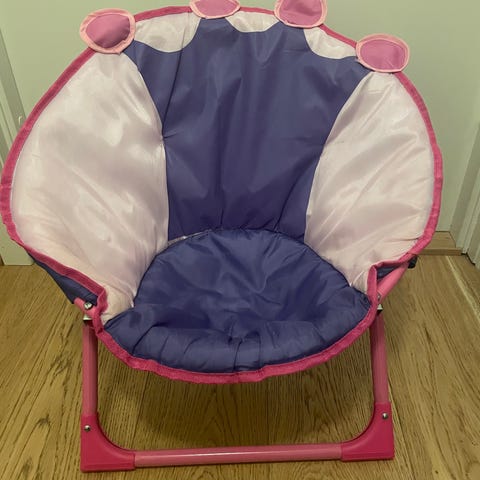 Fin strandstol med solskjerm selges til barn opptil 4-5 år.