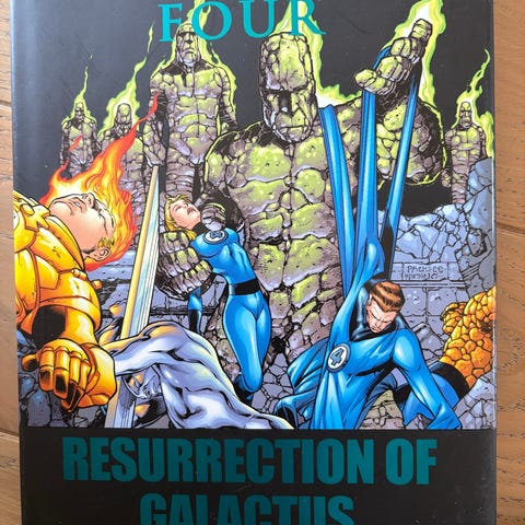 Stor hardcover (35 x 54 cm), som samler de ypperste Fantastiske Fire-fortellingene med planeteteren Galactus. 306 sider. Samler: FANTASTIC FOUR (1961) #48-50, #74-77, #120-123 and #242-244.
