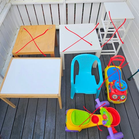 Godt brukt og har rust her og der, trehjulsykkel gis bort til noen som ønsker den.