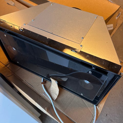 Selges meget rimelig. 800,- som den er, eller 1200,- inkludert rengjøring av viftemotoren innvendig, da det som normalt er noe fettrester etter flere års bruk. Følger med 3 lyspærer som sannsynligvis virker, uansett ingen stor sak å bytte disse ved behov.
