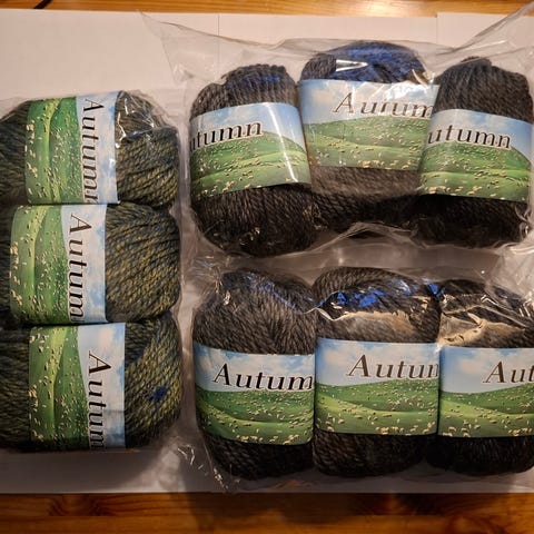Fargekode og innfarging, samt antall nøster står på bildet.