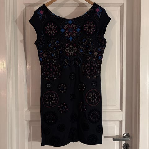 Flatterende kjole fra KappAhl. Det står str. M-40-42 i den, men er stor og stretchy i størrelsen. Kan passe opptil str. XL. Strikk i livet og stretch i stoffet. Lite og pent brukt.
