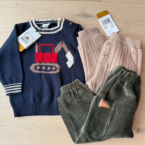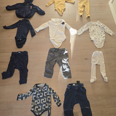 Klespakke til gutt i str. 80. Noe helt ubrukt med lappen på. Resten pent brukt, som ny.