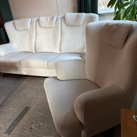 Meget fin og lite brukt hjort knudsen sofa.3 seter.Lengd 200 cm.Bredd 90 cm.God sittekomfort.Tar imot bud.