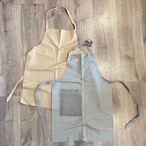 Forkle i imitert skinn. Stor lomme midt på.