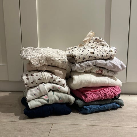 Pent brukt klespakke til jente str 62. På ullbodyene har størrelsene vasket av, men ser ut til å være 62.