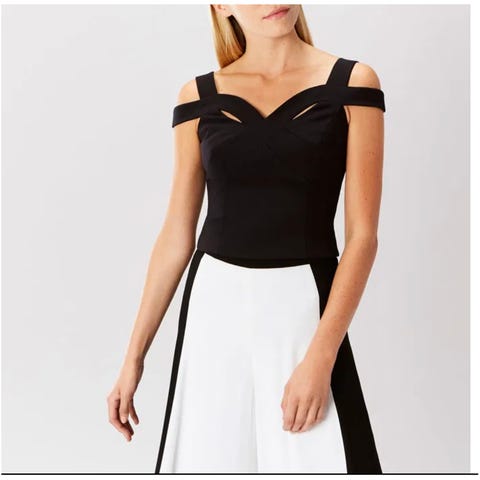 This is a beautiful peplum top with crystal embellishments on the straps and tulle detail.