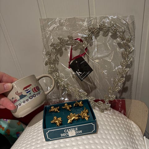 Liten julelott med to små engler og en liten nisse. Mål på bilder. Selges samlet 150kr