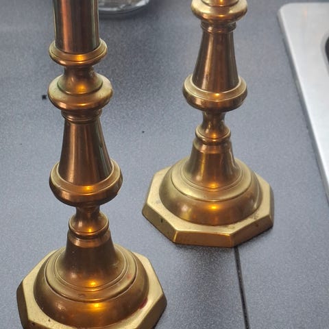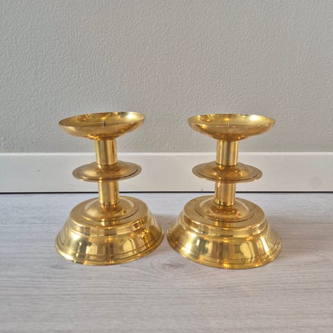 De 2 mindre er 18 ccm høye og stettdiameter er 9,5 cm. Diameter på lyshull er 23 mm. Alle 3 lysestakene er i typisk Biedermeier stil.