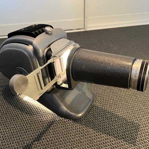 Amovofilm Mini Projektor med 480P oppløsning i hvit farge. Enheten har en fri-stil integrert pan-tilt funksjon med 180 graders rotasjon for fleksibel projeksjonsvinkel. Kompakt størrelse på 15,3 cm høyde og 8,9 cm bredde. Egnet for små rom og bærbar bruk.